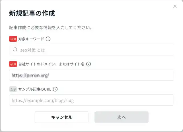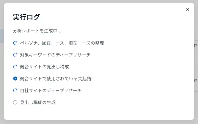 SEOキーワード選定ツール競合分析、キーワード検索ボリューム調査文章生成はできない。記事の企画・設計の上流工程に特化。