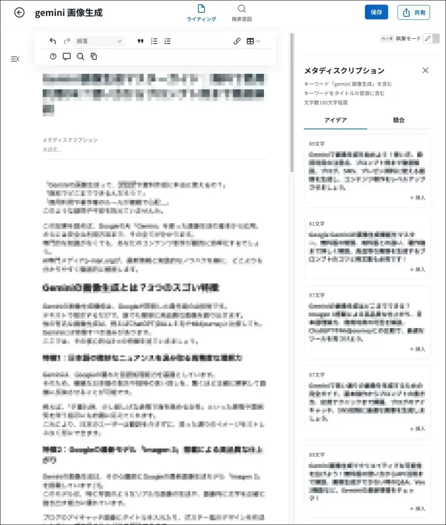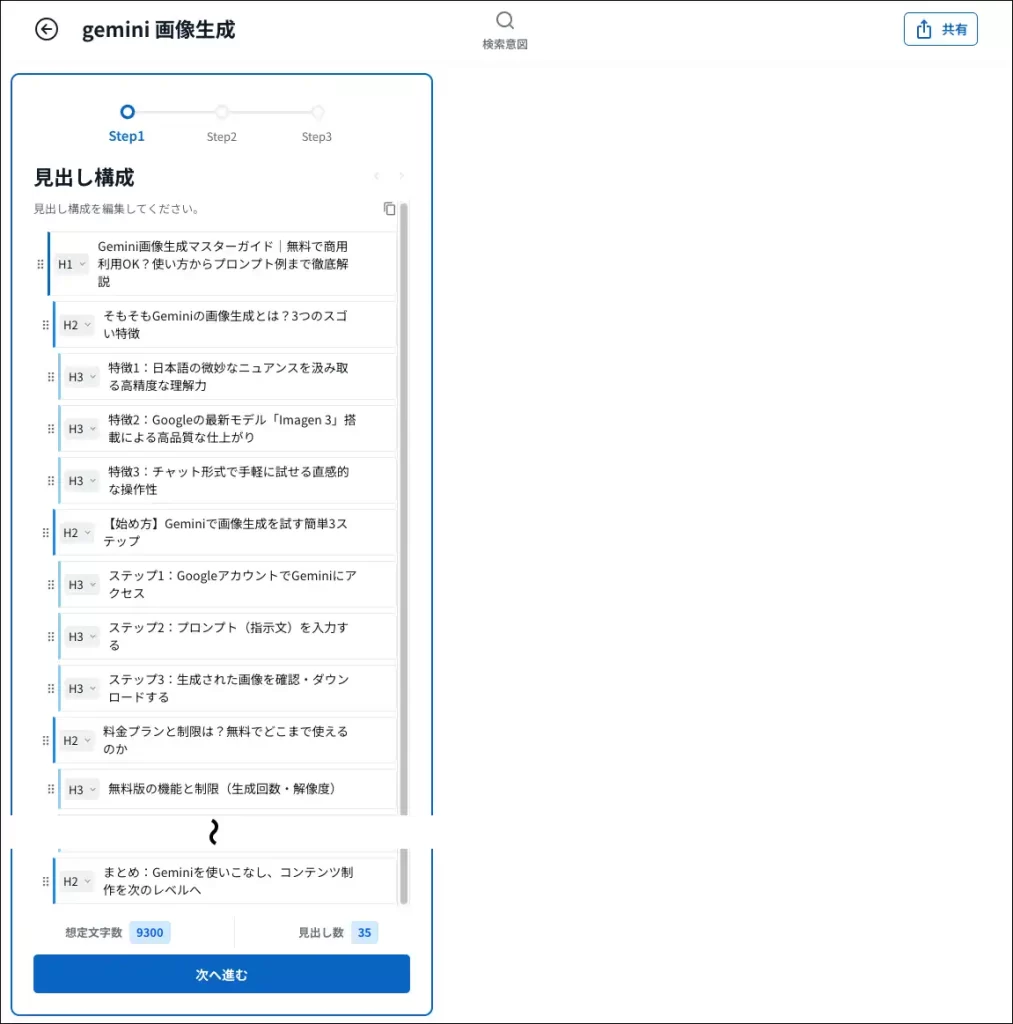 AI Writerは、単なる文章作成を超え、SEOに強い記事構成案の作成や、ターゲットに響くペルソナ設定までサポートできるのが強みです。
