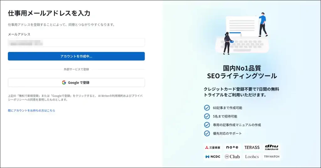 2. AI Writerの始め方|ログイン・無料トライアル登録のステップ