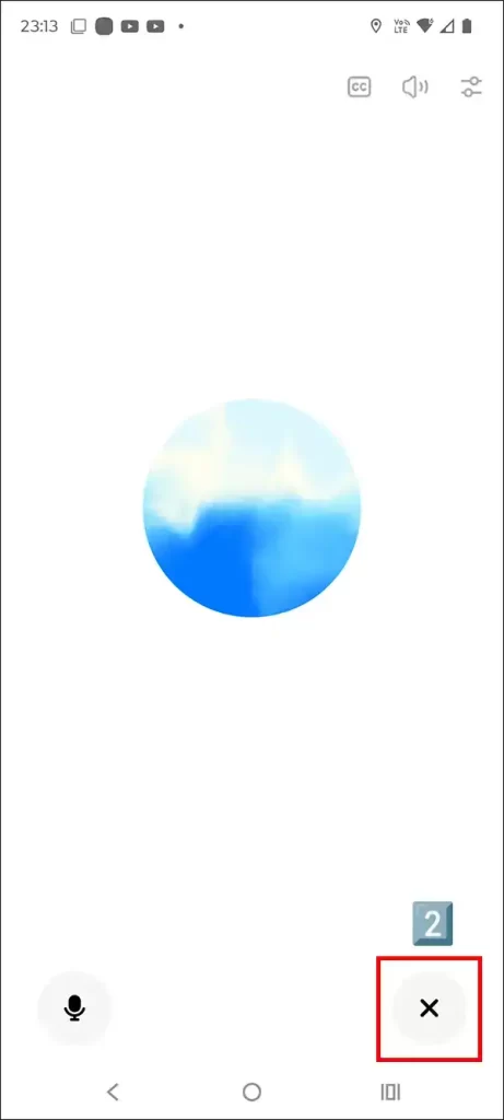 1. 会話の終了: 会話を止めたいときは、画面右下の音声会話アイコン2️⃣ をタップすることで会話モードが終了します。