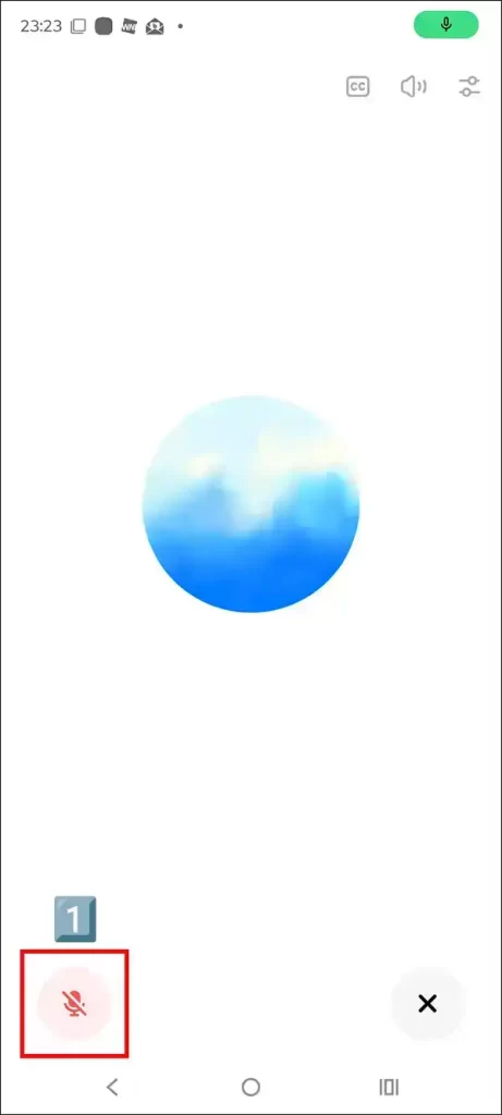 2. 会話の中断: 会話を止めたいときは、画面左下のマイクアイコン1️⃣ をタップするか、そのまま放置すると一定時間後に自動で会話モードが停止了します。